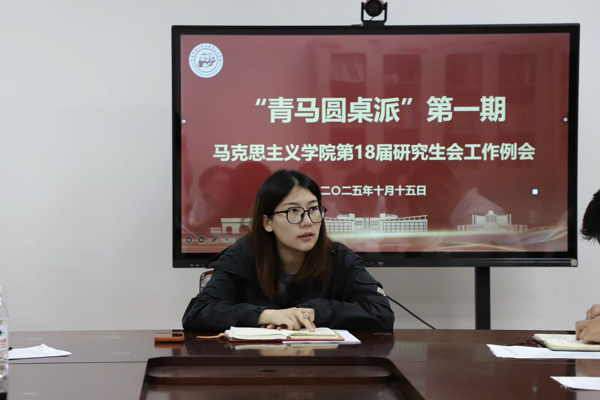 10月15日下午,马克思主义学院第18届研究生会于学院2010会议室召开第一期“青马圆桌派”工作例会。研究生会主席团、各部门负责人以及2025级研究生代表参加,学生工作负责人郭佩佩出席会议。