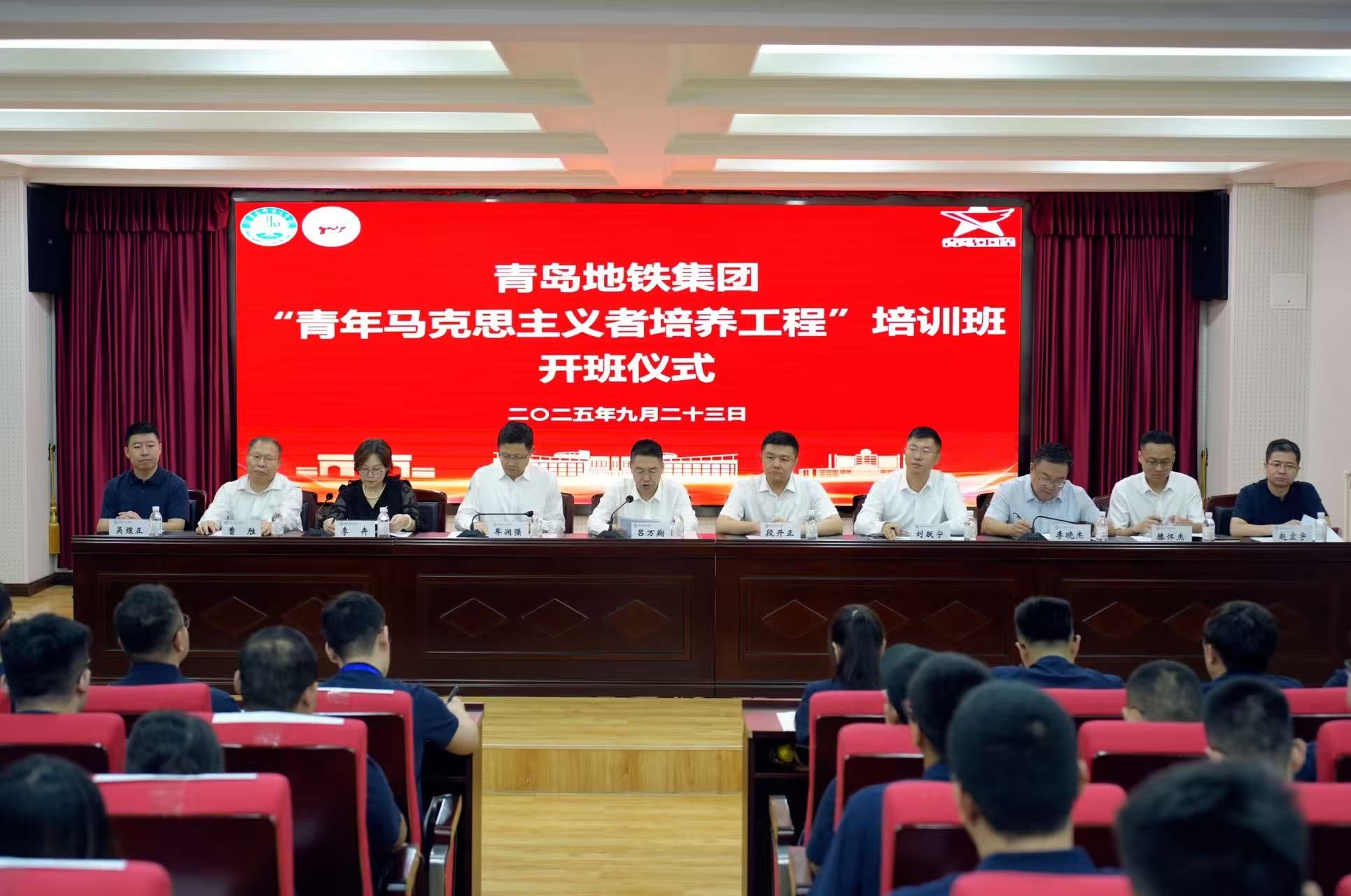 9月23日上午,青岛地铁集团2025年“青年马克思主义者培养工程”(以下简称“青马工程”)培训班开班仪式在青岛科技大学马克思主义学院报告厅成功举行。青岛科技大学党委常委、副校长吕万翔,共青团青岛市委副书记段开正,青岛地铁集团党委委员、纪委书记牟润强,青岛科技大学团委书记刘跃宁,青岛科技大学马克思主义学院党总支书记李卉,青岛科技大学马克思主义学院党总支副书记、院长曹胜及地铁集团组织人事部、团委、青铁教育咨询公司相关负责同志出席仪式,本次培训班50名学员参加。开班仪式由青岛地铁集团总经理助理、团委书记李晓杰主持。