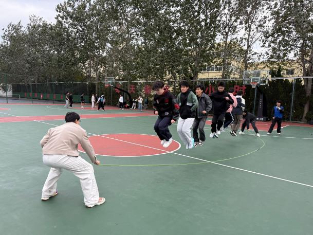 镜头来到青春速度的场地,彩色的长绳在阳光下飞速旋转,划出一道道灵动的弧线,如同青春跳动的脉搏。眼神专注而坚定,随着绳具抽打地面的“啪嗒”声,整齐划一的脚步轻盈跳跃,时而同步起落如跳动的音符,时而灵活穿梭似灵动的飞鸟。场边的加油声、欢呼声、笑声交织在一起,与跳绳的节奏融为一体,形成最热血的青春乐章。这不仅是速度的比拼,更是团队协作的完美展现,每一次默契的配合,都凝聚着无数次课间练习的汗水;每一次流畅的穿梭,都彰显着青春的活力与团队的凝聚力!而在最终结果中,解俊超率领的团队以35个的成绩脱颖而出,夺得冠军!