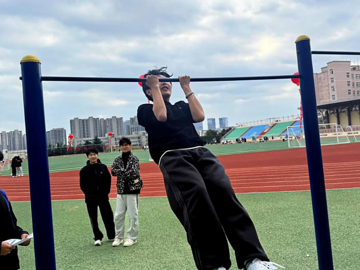 单杠之下,一个个挺拔的身影蓄势待发,引体向上的挑战正式开启!手臂青筋暴起,肌肉线条在阳光下勾勒出坚毅的轮廓,每一次向上攀升都伴随着急促的呼吸与坚定的眼神,这不仅是力量的较量,更是青春不服输的韧劲在闪耀,每多完成一个,都是对自我极限的勇敢突破,都是少年脊梁扛起的责任与担当!其中人工智能232王建涛以20个的优异成绩斩获本次引体向上的冠军!