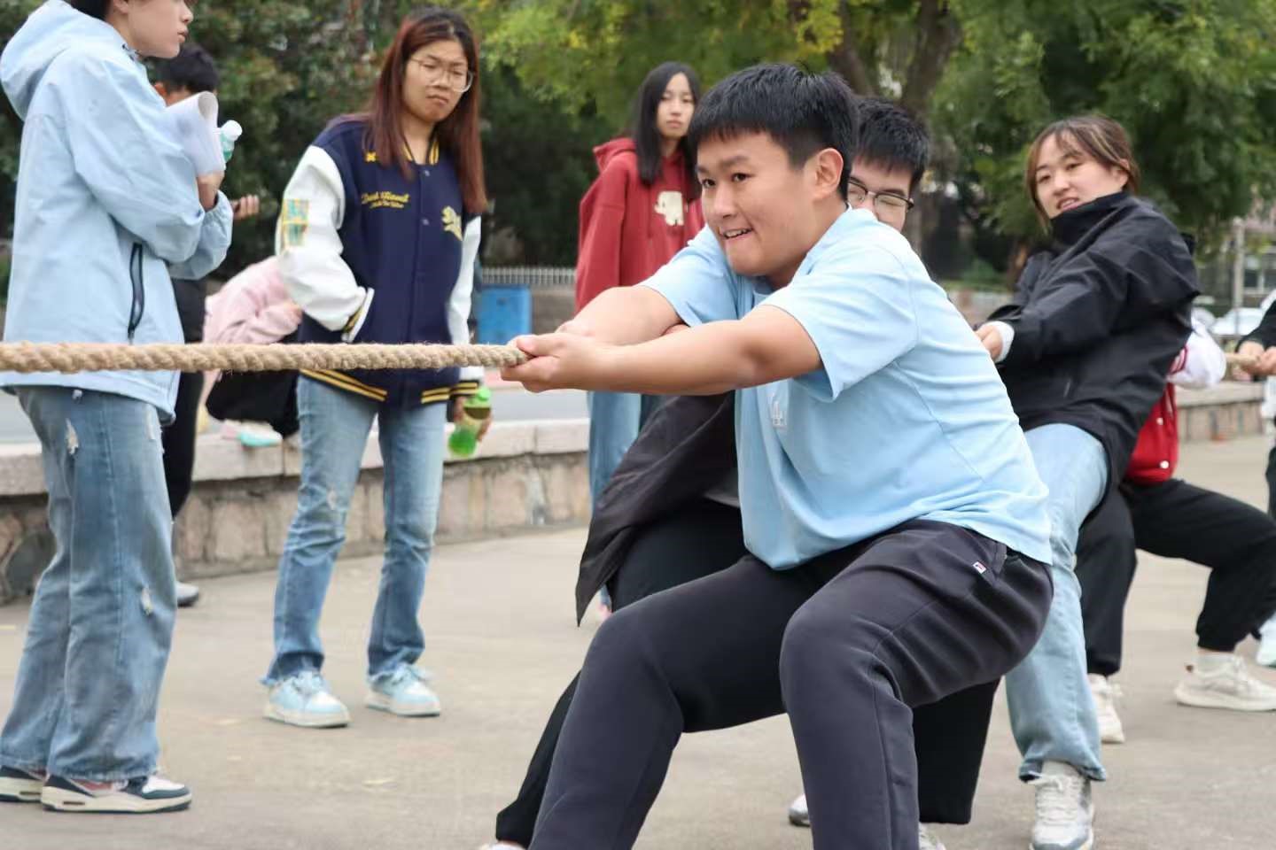 为响应“爱体育,兴科大”校园体育文化号召,丰富校园文化生活,展现班集体卓越风采,增强班级凝聚力,化学院团委于2025年10月19日在小五四广场组织2025级学生开展了一场热血沸腾的拔河比赛。本次比赛以班级为单位进行角逐,14支队伍踊跃参赛,每支队伍由5名男生和4名女生组成,通过抽签分组确定比赛顺序。