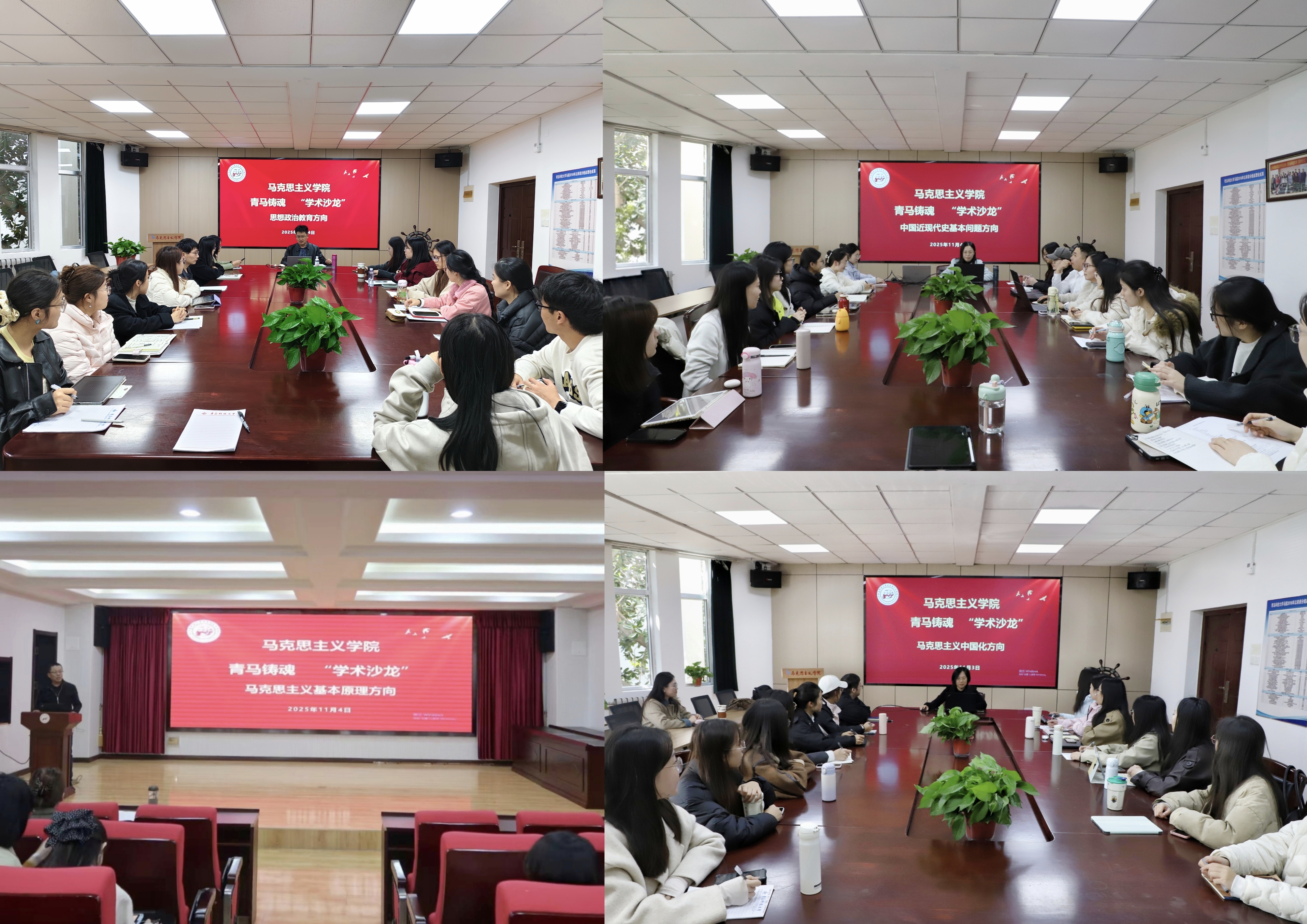 11 月 4 日,马克思主义学院于学术报告厅开展 “青马铸魂” 学术沙龙活动。本次活动由学院研究生会学术部部长郭秋实主持,邀请学院各教研室主任及教师代表担任指导老师。沙龙分设四个研究方向专场,2024级与2025级全体研究生根据各自研究方向,参加相应专场的学术交流。