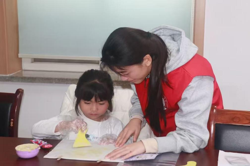 11月8日,学校“小漫姐姐”志愿服务团队走进仙游路社区,将千年豆染非遗技艺与童蒙心理疗愈深度融合,开展了一场“以艺润心、以美愈情”的国风手工实践活动,让古老印染术成为孩童情绪的温柔出口与心灵的栖居之地。