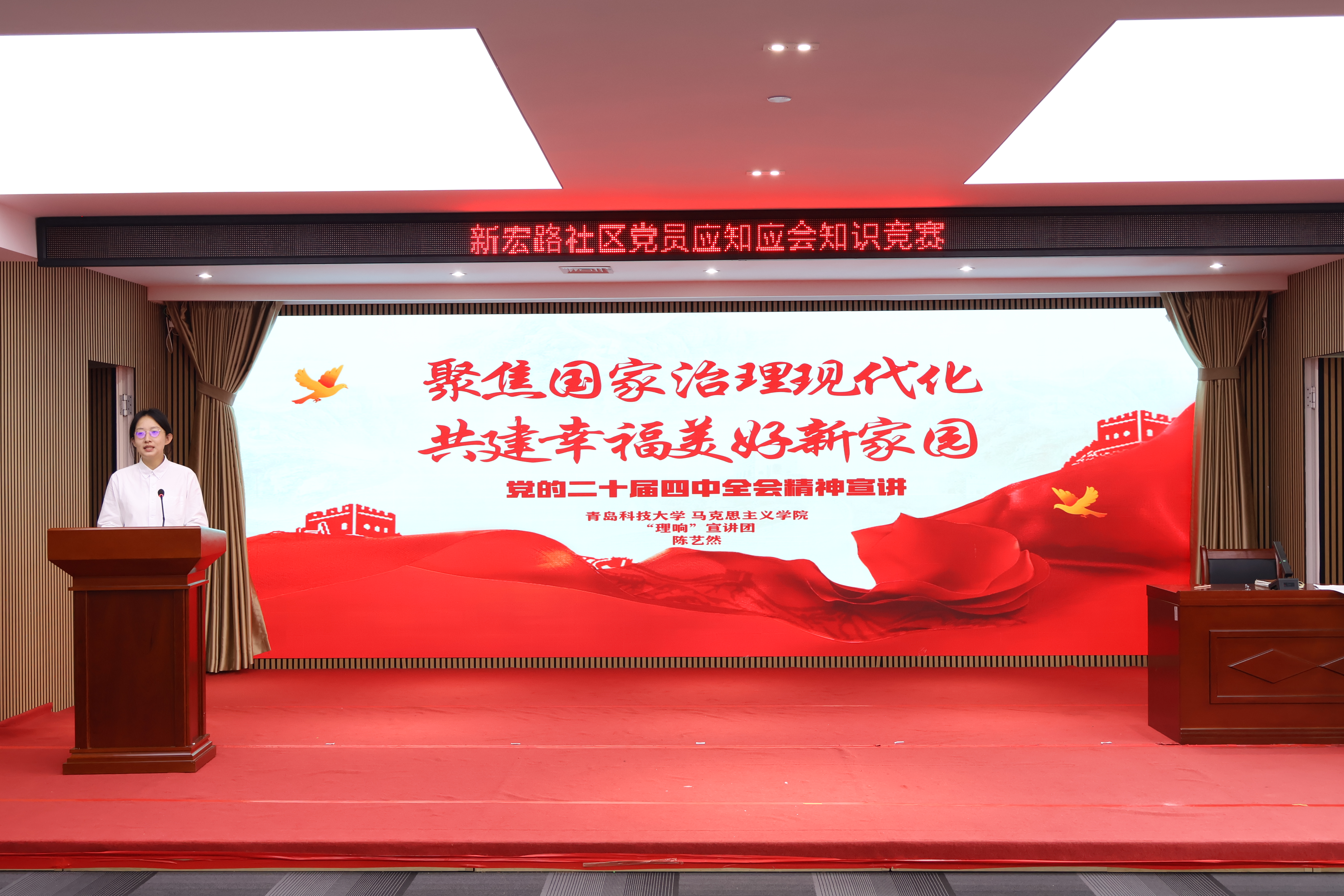 11月16日,马克思主义学院“理响”宣讲团走进新宏路社区,开展学习贯彻党的二十届四中全会精神专题宣讲活动。社区党员干部、居民代表参加。