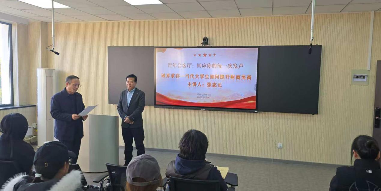 为回应青年需求,助力学生启智增慧,提升财商美商,11月19日下午,经管学院在404会议室开展青年会客厅系列活动之“回应你的每一次发声”答疑交流会。本次活动特邀山东财经大学二级教授、博士生导师张志元主讲,围绕“当代大学生如何提升财商美商”深入分享,为青年学子答疑释惑、领航定向。