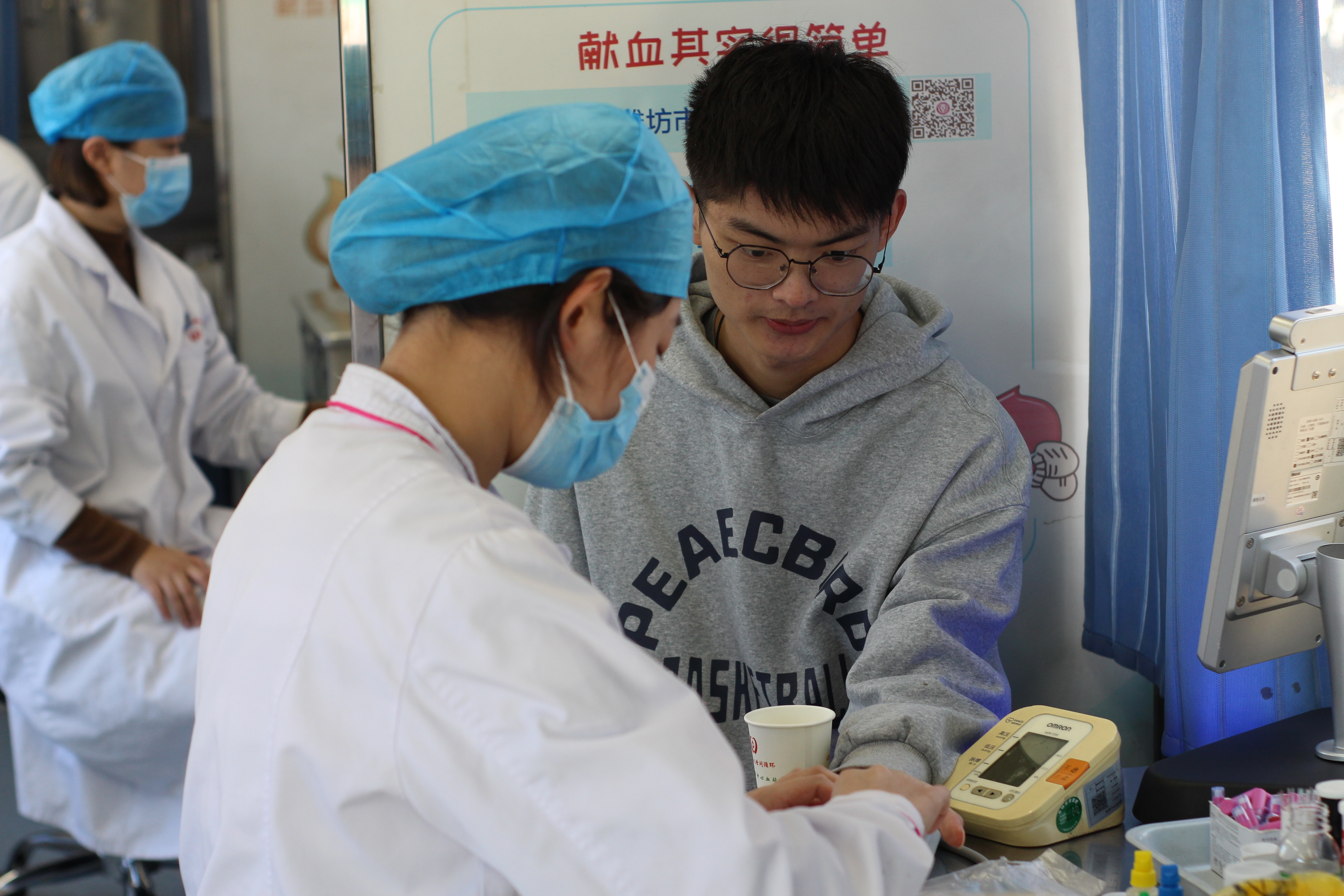 寒风凛冽,难挡热血真情。为积极响应无偿献血的爱心号召,传递生命希望,11月18日至19日,高密校区于明镜湖东侧顺利开展“挽袖传暖意,热血融寒冬”无偿献血活动。同学们踊跃挽袖,以热血传递希望,用行动温暖寒冬,让爱心在校园中汇成一股涌动的暖流。