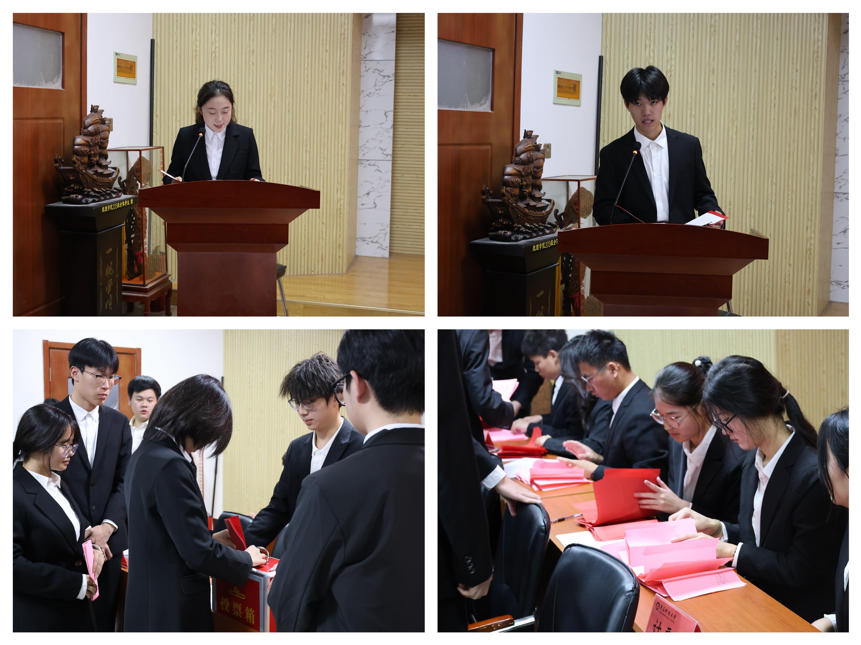 李雯雯为大会致开幕词。她充分肯定了学院学生会和研究生会在服务同学、学风建设、科创实践等方面所做出的积极贡献,并向全院青年学生提出三点希望:一要夯实专业根基,在求知问道中“钻得深、扎得稳”,培养严谨求实的科学精神与创新思维;二要拓展综合素质,在能力提升中“走得远、立得高”,积极参与实践锻炼,增强团队协作能力与社会责任感;三要勇担时代使命,在人生追求中“望得广、行得正”,将个人理想主动融入国家发展大局。她强调,新一届学生会、研究生会要继承学院优良传统,勇于开拓创新,团结带领全院同学以更加饱满的热情和昂扬的斗志投身学习与实践,在实现个人价值的同时,为学校和学院发展贡献青春力量。