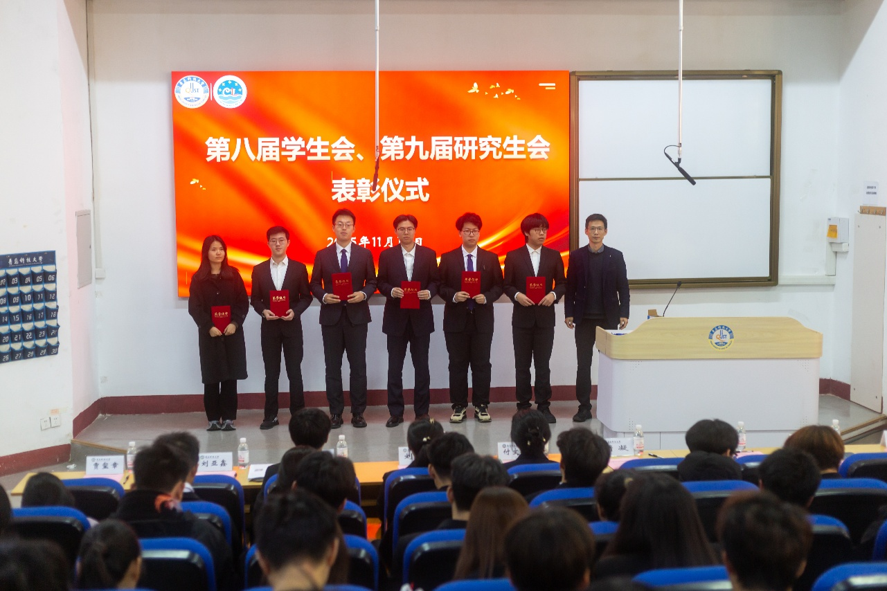 随后,学院第八届学生委员会主席团成员徐书凝、第九届研究生委员会主席团成员刘太发分别作学生会、研究生会工作总结,全面总结了过去一年学生组织在思想引领、活动开展、服务同学等方面的工作成果,明确了未来的工作方向。会议还举行了第八届学生会、第九届研究生会表彰仪式,对过往工作中表现突出的集体和个人予以表彰。