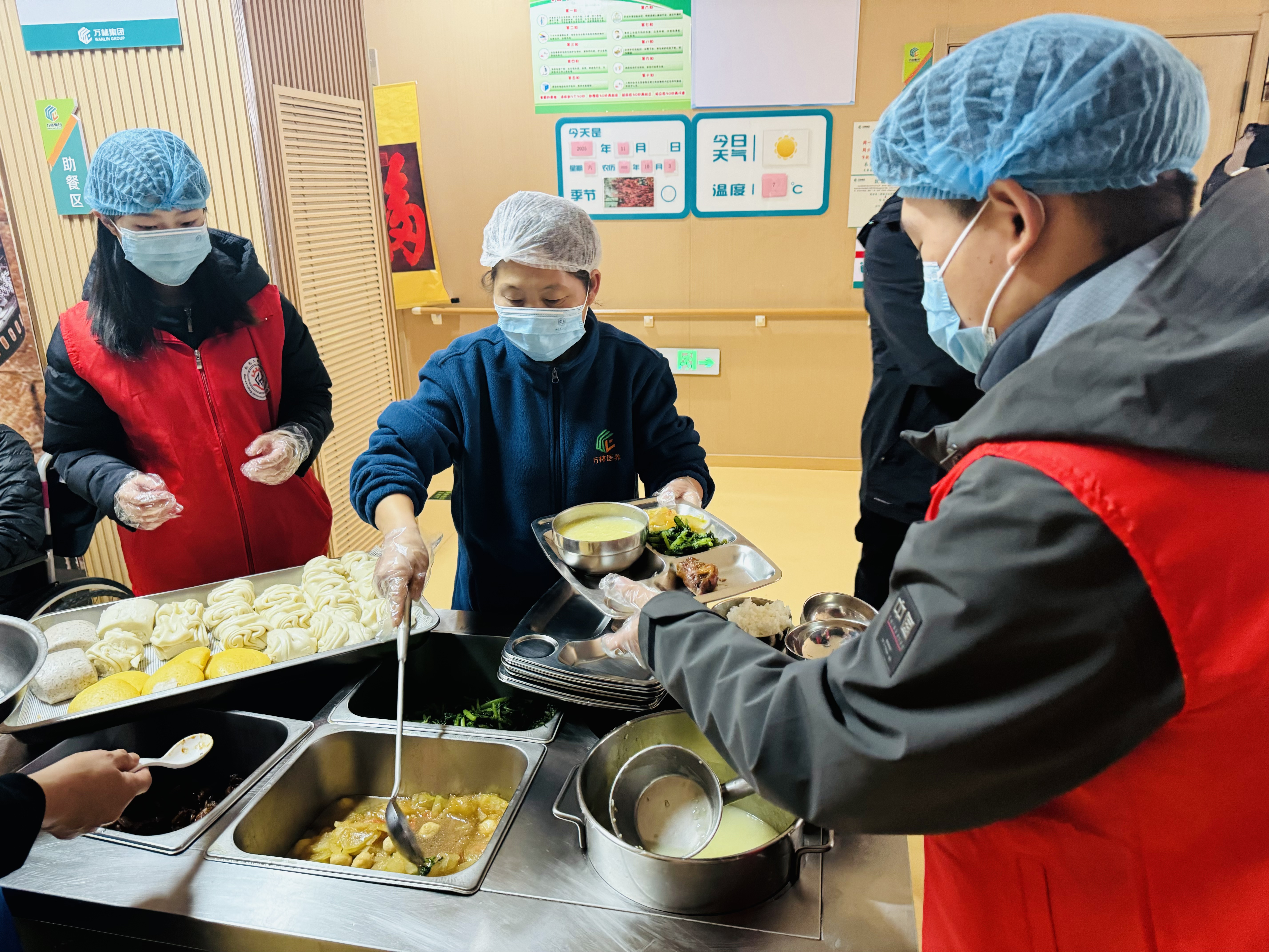 在分餐环节,志愿者们认真记录老人饮食习惯,为行动不便或有特殊需求的老人细致准备餐食。他们主动帮助摆放餐具、调整坐姿、协助取餐,将关怀落实到一个个微小而温暖的细节中。每一勺热饭、每一句问候,都成为冬日里最贴心的温度。
