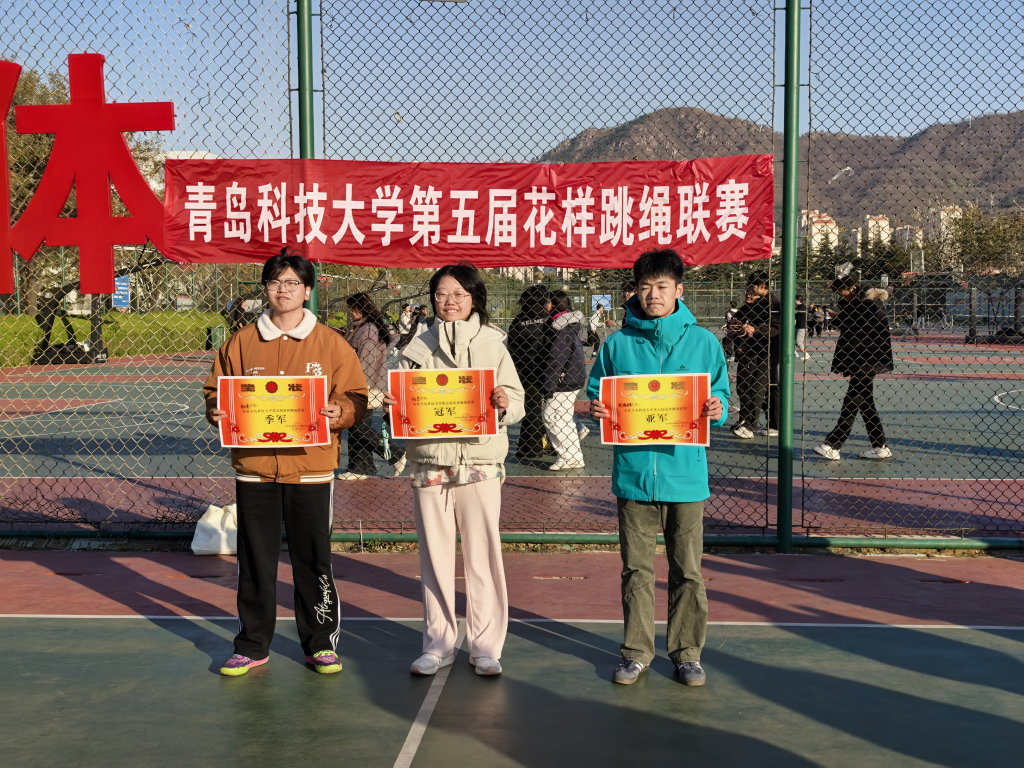 最终,信息学院代表队凭借默契协作与稳定发挥,以单摇总数1102个、八字跳绳277个的亮眼成绩获得本次联赛冠军。数据科学学院代表队凭借灵活应变和扎实功底摘得亚军。机电学院代表队则依靠稳扎稳打的作风和沉着应战,获得季军。
