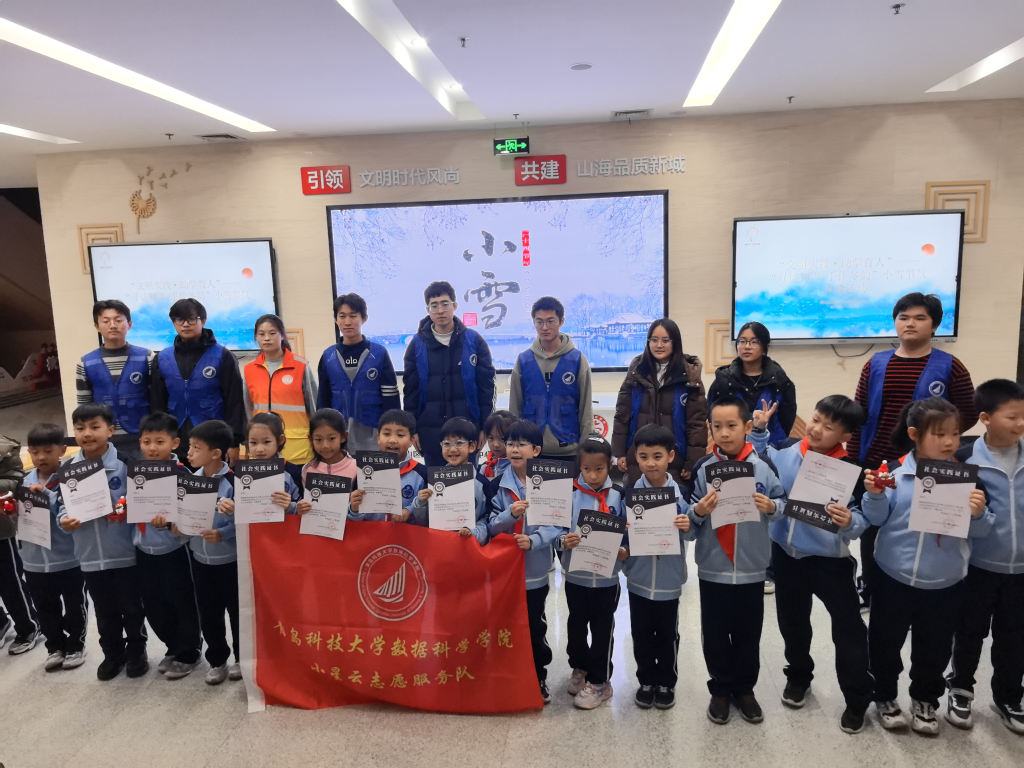 为推动中华优秀传统文化走进青少年生活,充分发挥志愿服务在文化传承中的桥梁作用。11月19日下午,“小星云”志愿服务团队走进崂山区新时代文明实践中心承办的"文明实践,助学育人"系列活动之"寻访初雪,手作冬韵"小雪节气体验活动,为育才小学 20 余名学生带来沉浸式民俗文化盛宴,以青春力量赋能传统习俗创新传播。