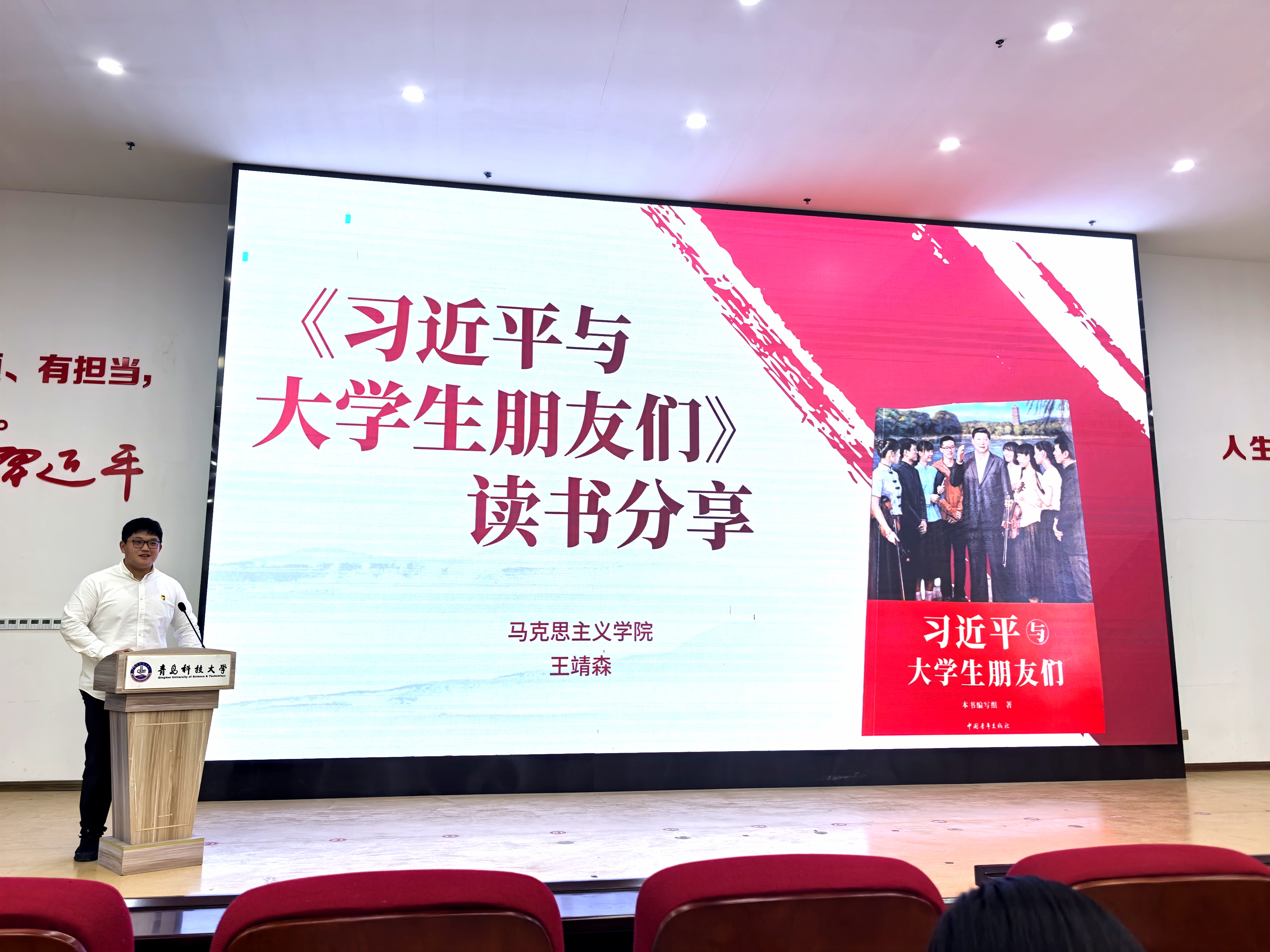 王靖森围绕《习近平与大学生朋友们》开展读书分享。他结合书中生动鲜活的故事与案例,讲述习近平总书记与青年学生之间的深厚情谊,以及总书记对青年成长成才的殷切期望,并鼓励在场大学生骨干坚定理想信念,厚植家国情怀,在学习和实践中不断提升自身能力,在新时代的广阔舞台上贡献青春力量。